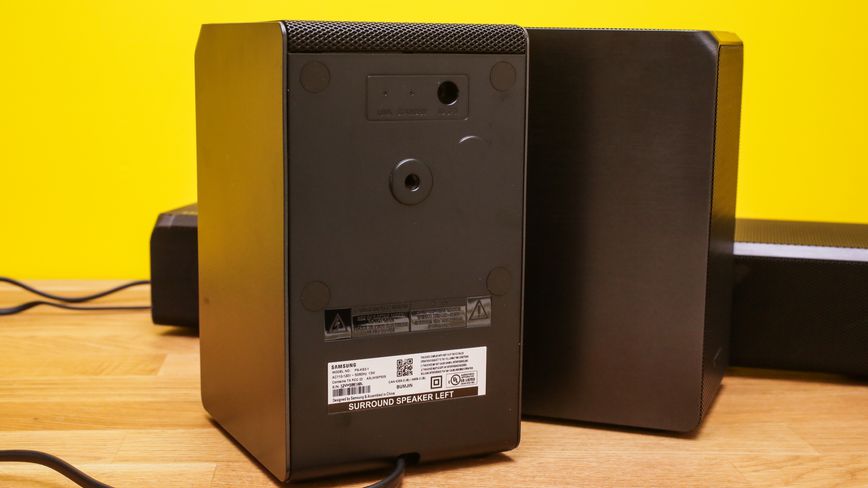 همچنین علیرغم اینکه اکثر ساندبارهای بازار فاقد اسپیکرهای عقب هستند، سامسونگ تصمیم گرفت به منظور غرق کردن هرچه بیشتر کاربر در صدای خروجی، HW-K950 را به دو اسپیکر بزرگ ۸ اینچی در عقب نیز مجهز کند. همچنین سابووفر این ساندبار نیز نزدیک به ۱۶ اینچ طول داشته و قد و قوارهاش اصلاً بهگونهای نیست که بتوان آن را همانند سابووفر بسیاری محصولات دیگر در زیر مبل مخفی کرد. با این وجود، سامسونگ سعی کرده تا این سابووفرها را بهگونهای طراحی کند که از منظر بصری هم چندان زشت نباشند و بتوان آن را در معرض دید گذاشت.