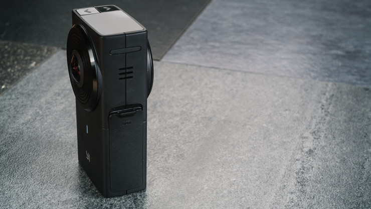 چیزی که طراحی Yi 360 VR را از دیگر دوربینهای ۳۶۰ درجه دیگر متمایز میکند، طراحی جدی و حرفهای آن است. برای مثال، در بالای آن، یک نمایشگر کوچک OLED برای جابهجایی در منوها با استفاده از دکمههای جهتیاب قرار گرفته است. دکمههای خاموش و روشن نیز در یک طرف Yi 360 VR قرار گرفتهاند. در طرف دیگر، پورت USB-C برای شارژ کردن، درگاه میکرو HDMI و محفظهای برای قرارگیری حافظه میکرواسدی وجود دارد. به نظر همه اینها برای یک دوربین ۳۶۰ درجه کافی به نظر میرسند. چیزی که عاشقان فیلمبرداری را درباره Yi 360 VR به وجد میآورد، سه پایه قابل حمل ۱٫۴ اینچ آن است.