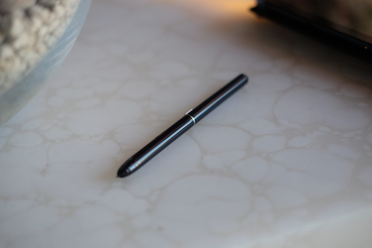 قلم را رو به روی صفحه نمایش بگیرید و دکمه ای که در انتهای قلم قرار دارد را فشار دهید. منویی برای شما باز میشود و گزینه های متعددی را پیش روی شما میگذارد. شما حتی میتوانید بدون باز کردن قفل تبلت شروع به نوشتن کنید. احتیاجی نیست که برنامه خاصی باز باشد و همین باعث میشود که برای یادداشت برداری بسیار مناسب باشد. نوشتن روی شیشه هیچ وقت نمیتواند جای نوشتن روی کاغذ را بگیرد ولی خب نوک قلم این تبلت بسیار نرم و روان است و همین باعث میشود که تاخیر داشتن آن هنگام نوشتن به چشم نیاید.