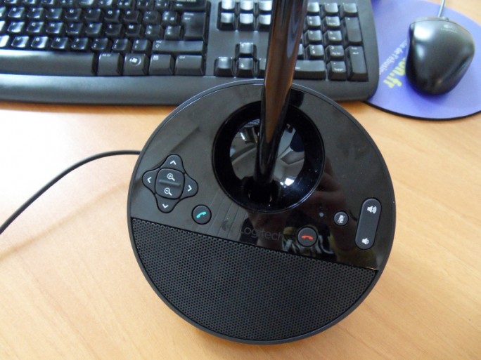 پایه این وب کم طراحی بسیار کاربردی دارد. زاویه قرار گیری این پایه رو به بالا است و همین باعث می‌شود که استفاده کردن از دکمه ها راحت‌تر شود و همچنین از این طریق صدای اسپیکر نیز بهتر به گوش خواهد رسید. سمت چپ پایه شش دکمه قرار دارد که از طریق آنها میتواند زاویه دوربین را تنظیم کنید و از قابلیت بزرگ نمایی بهره ببرید. دکمه های مربوط به پاسخ دادن و یا رد کردن تماس وسط پایه تعبیه شده‌اند. در سمت راست پایه نیز دکمه های کم کردن و زیاد کردن صدا به علاوه دکمه بی صدا کردن وب کم قرار داده شده اند. تمام دکمه ها پلاستیکی هستند و با فشار دادن آنها صدایی تولید نمیشود بنابراین می‌تواند بدون اطلاع مخاطب از آنها استفاده کنید.